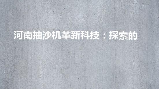 最先進抽沙機革新未來:探索關鍵詞在抽沙設備中的革新與應用!